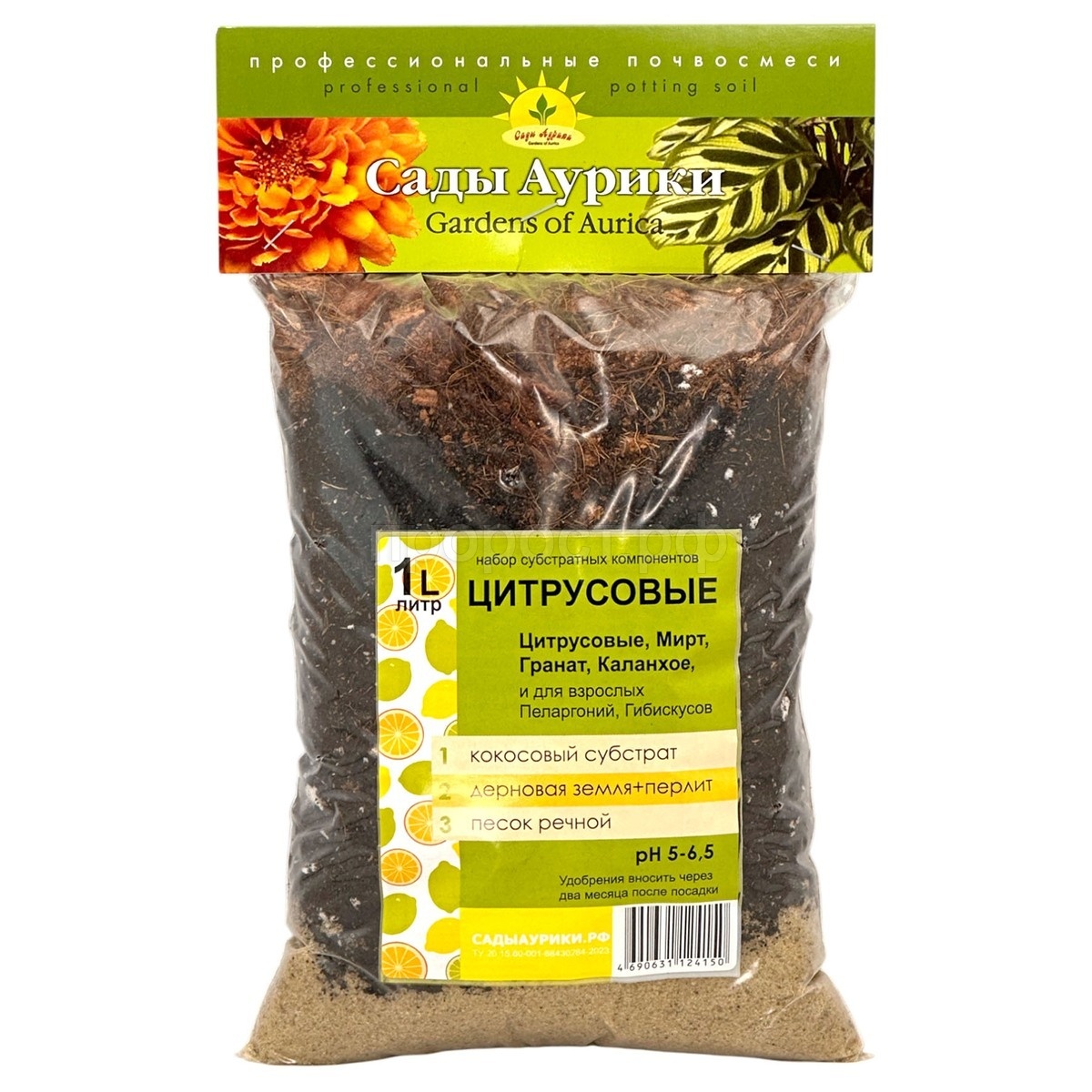 Свойства: увеличивает вероятность приживаемости растений, обеспечивает быстрое цветение, плодоношение, а также повышает декоративные качества цитрусовых деревьев. В такой земле корневища растений хорошо развиваются, не загнивают и не погибают от засухи.